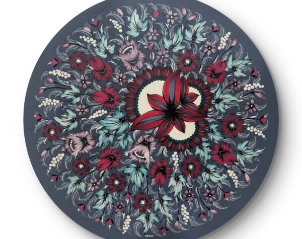 I will be launching my Petrykivka Koi series, a unique fusion of Ukrainian folk art and Asian cultural influences. This collection promises to captivate with its vibrant colors and profound symbolism. Stay tuned! - Xenia Randall